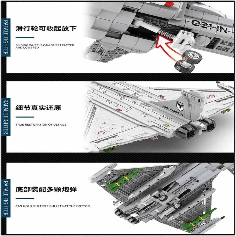Military Aircraft MOC Rafale Fighter Jet Plane Bricks Toy
