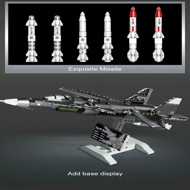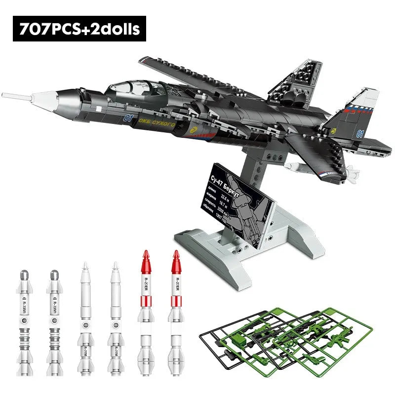 Military MOC SU47 Golden Air Fighter Plane Bricks Kids Toy