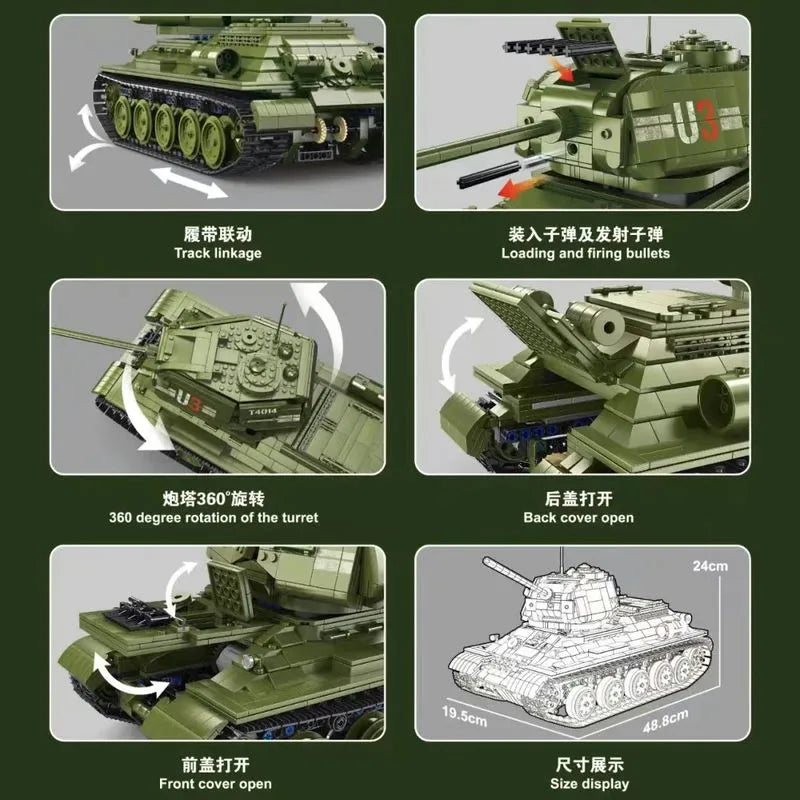 Military WW2 RC Soviet Army T34 Medium Tank Bricks Toy