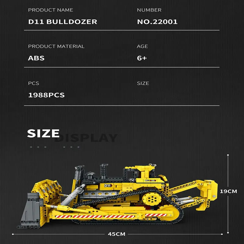 MOC APP Mechanical RC D11 Bulldozer Bricks Toys 22001