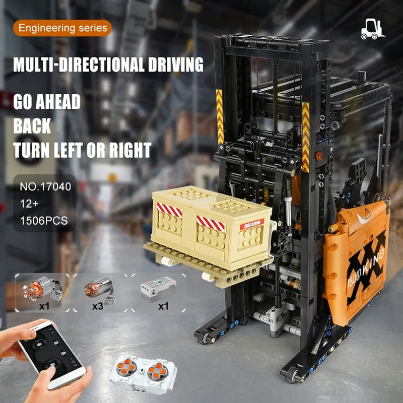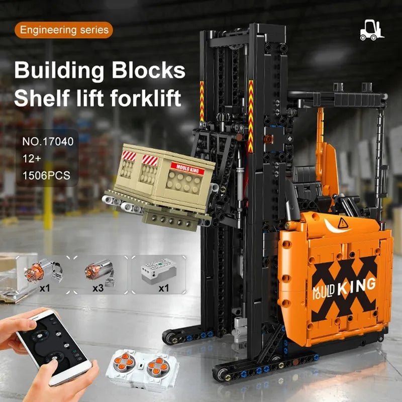 MOC APP Motorized RC Shelf Forklift Reach Truck Bricks Toy