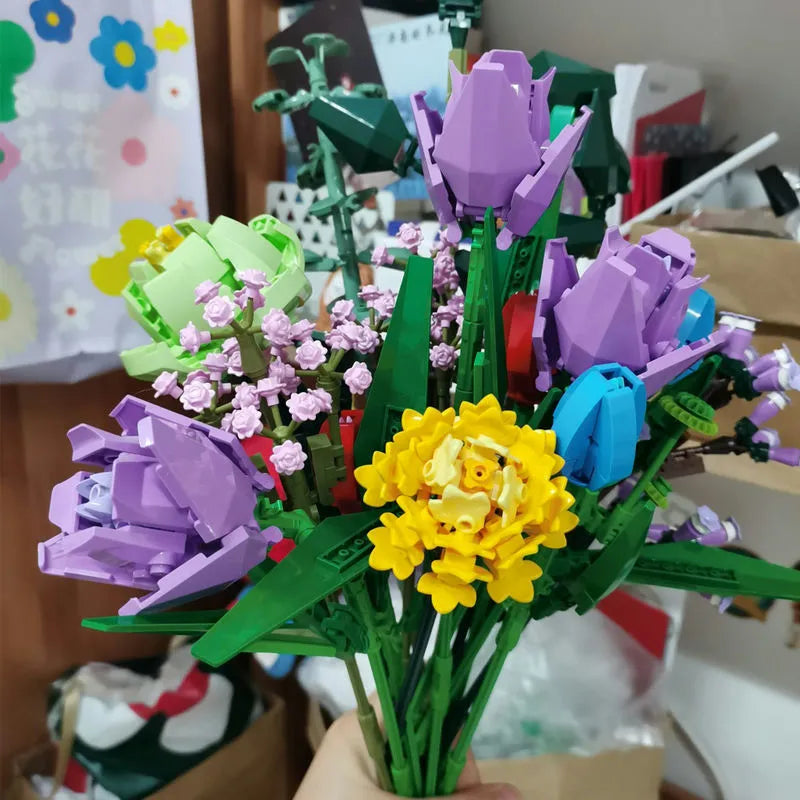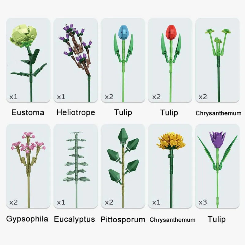MOC Bouquet Flower Romantic Bricks Rose Toys