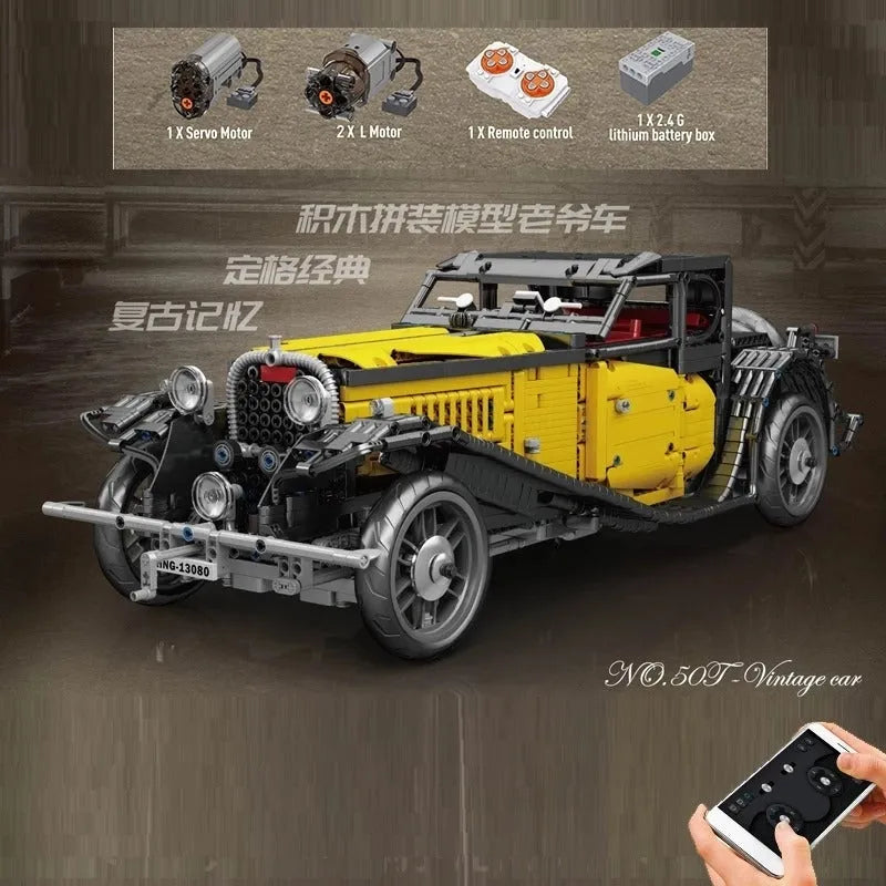 MOC Expert RC APP Vintage T50 Car Bricks Toys 13080D