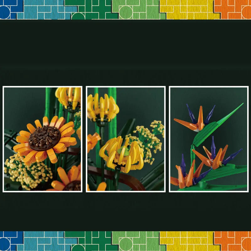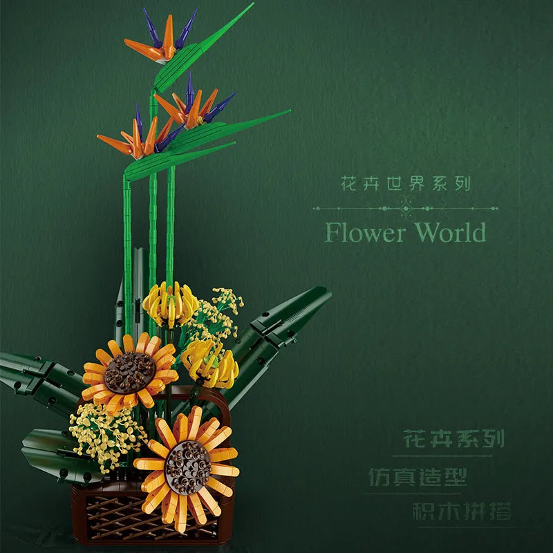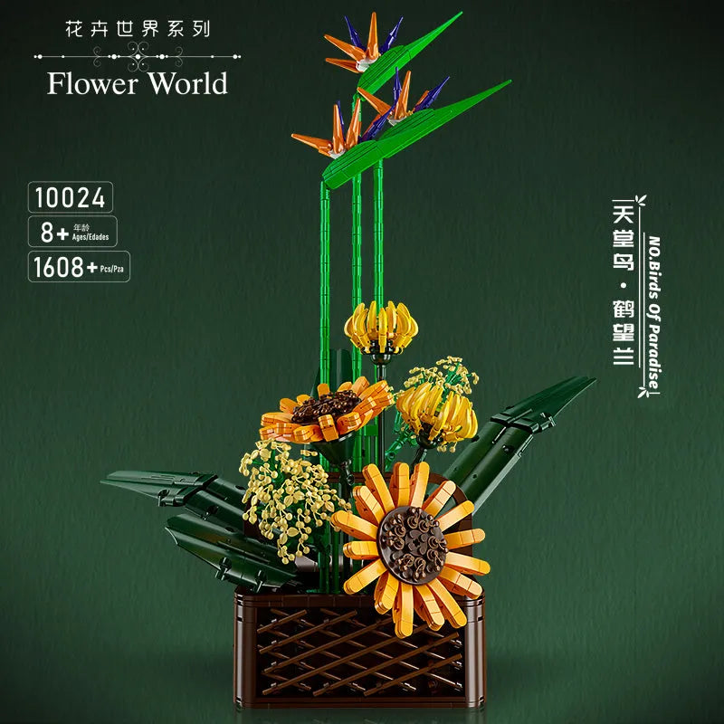 MOC Flower Bouquet Potted Birds Of Paradise Plant Bricks Toys
