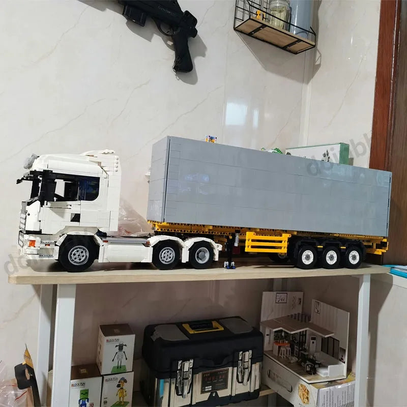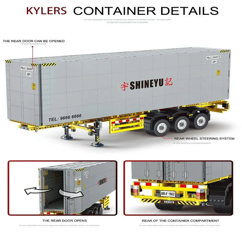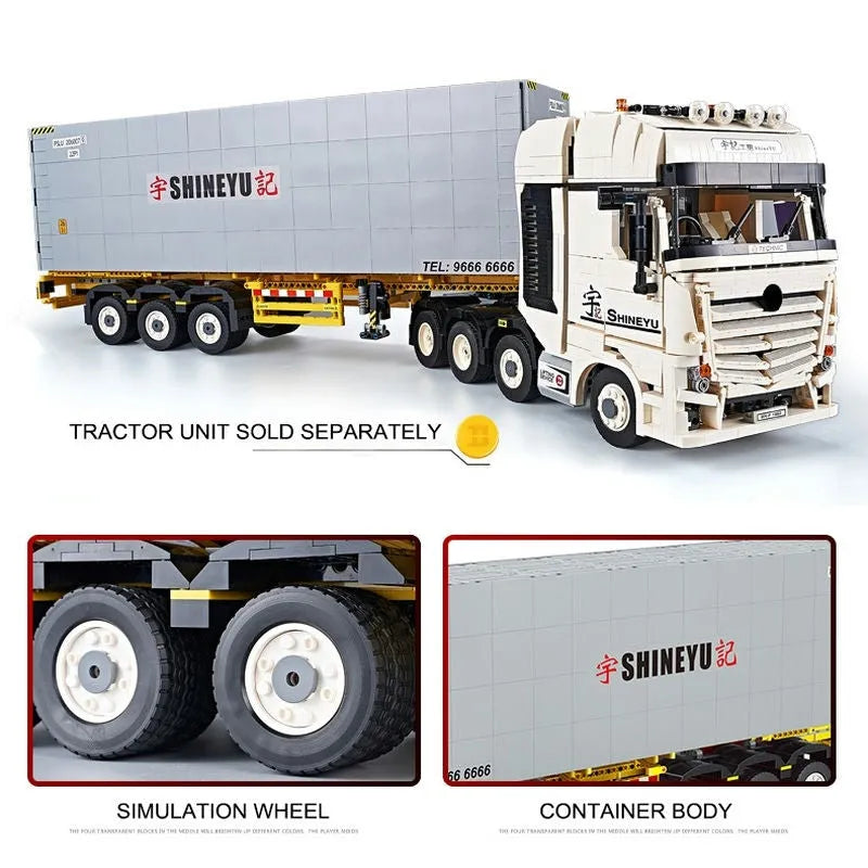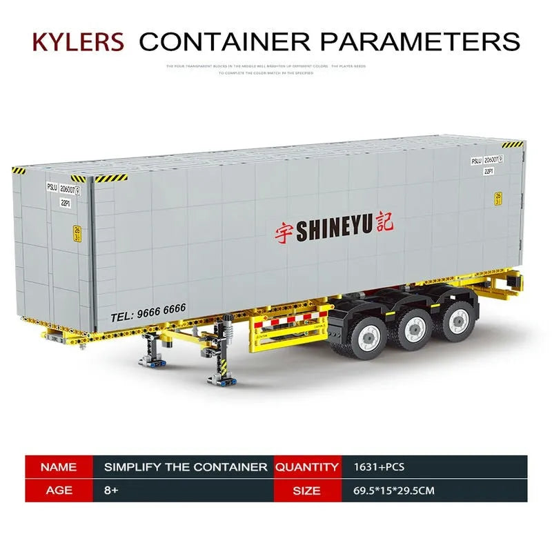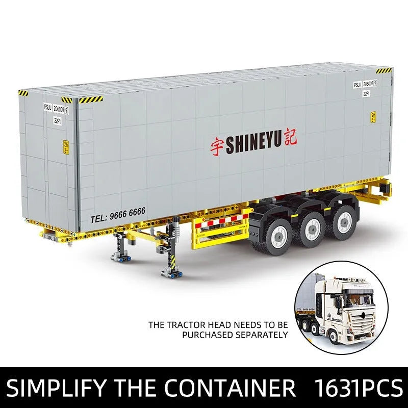 MOC Heavy Container Trailer Truck Bricks Toys QC14