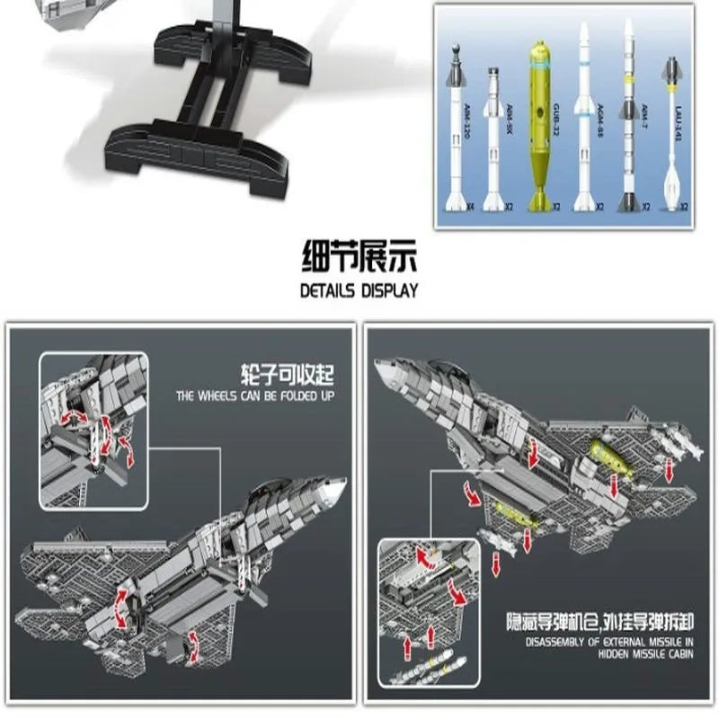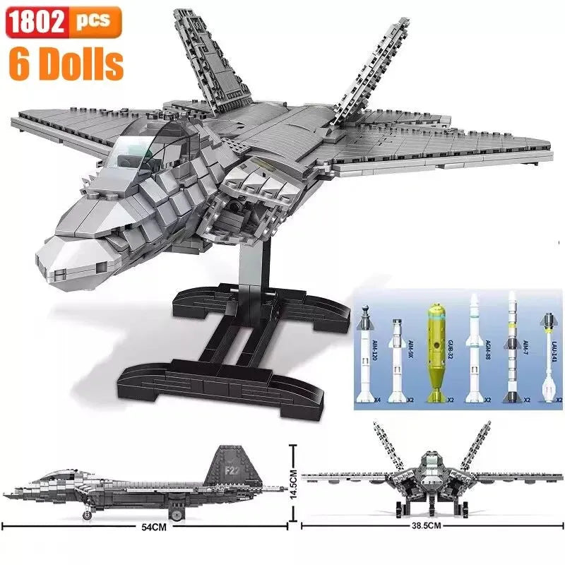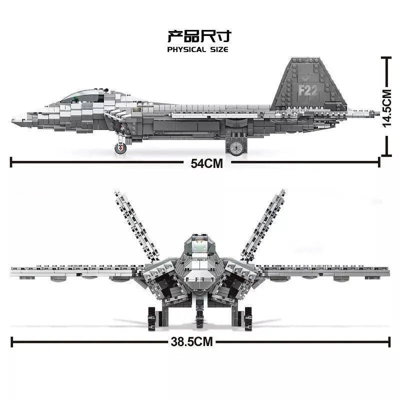 MOC Military Aircraft F22 Raptor Fighter Jet Bricks Toy