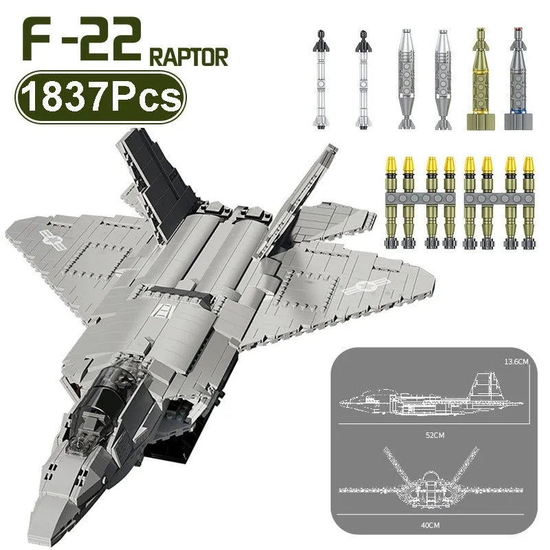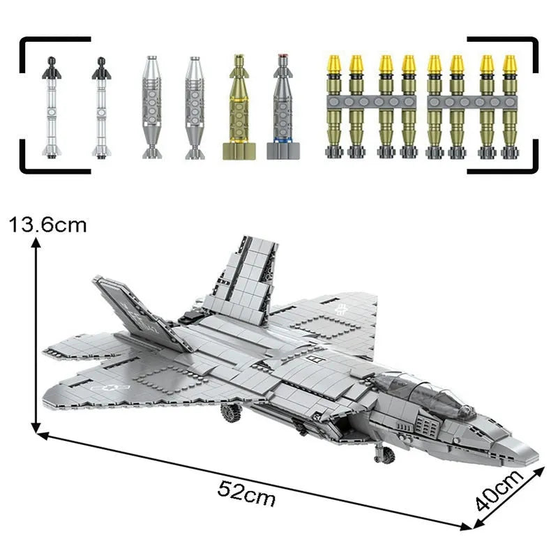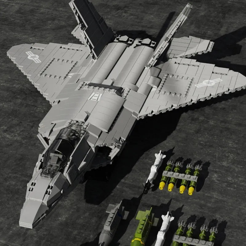 MOC Military F-22 Raptor Stealth Aircraft Bricks Toy