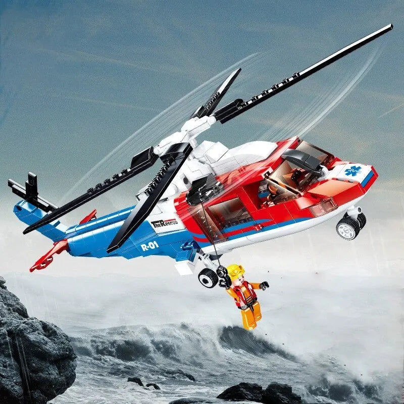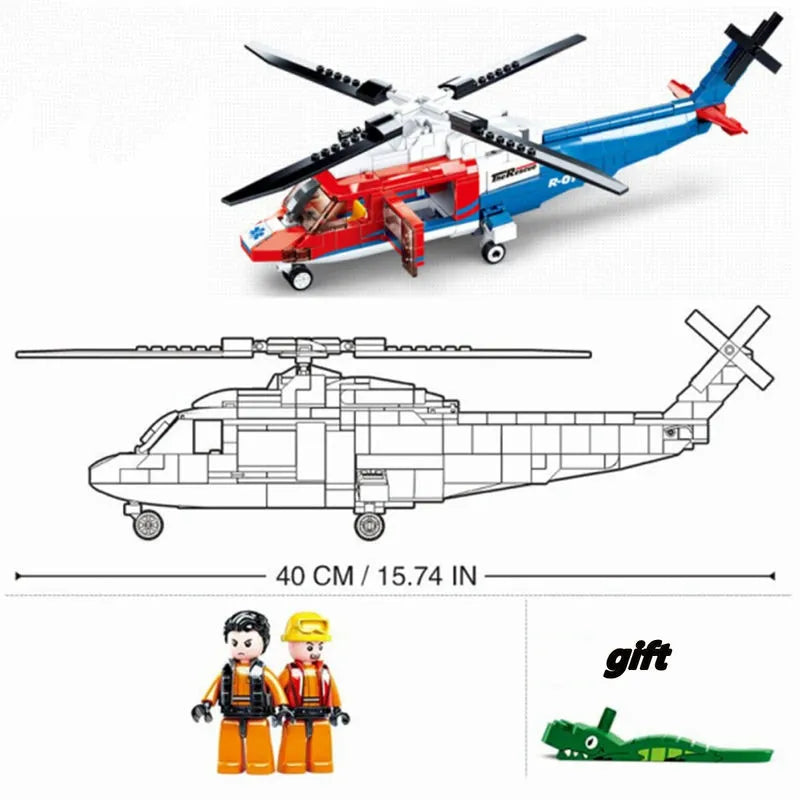 MOC Military Sea Army Rescue Helicopter Bricks Kids Toys
