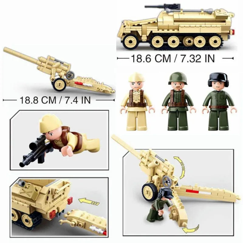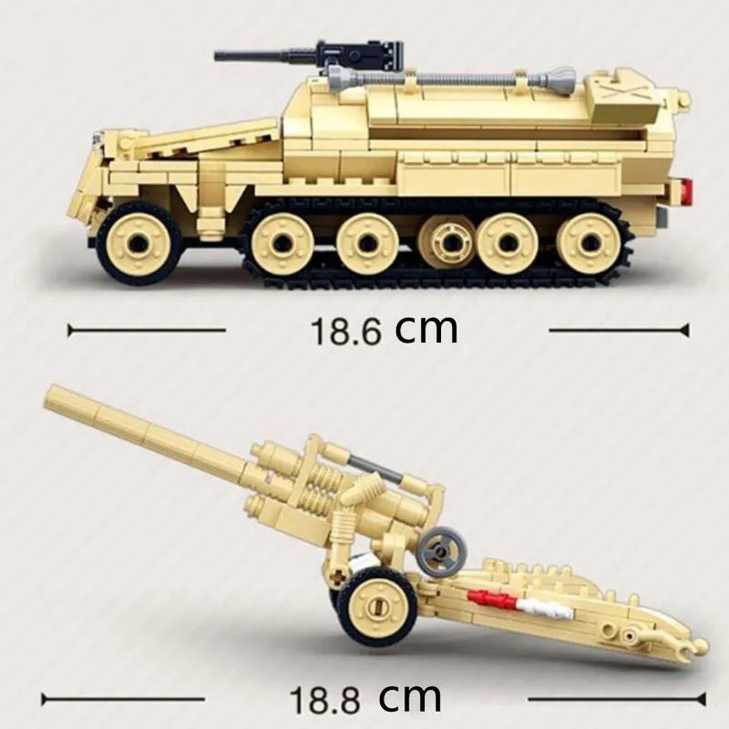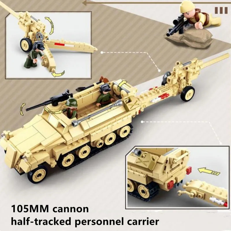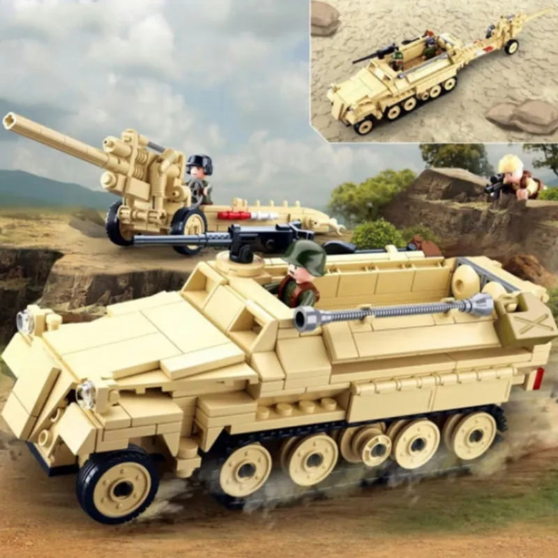 MOC Military WW2 Half Track Cannon Truck Bricks Toy