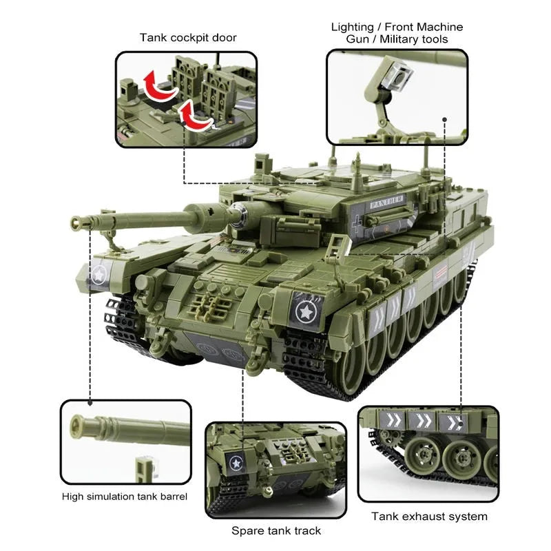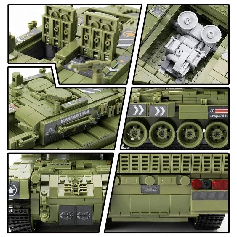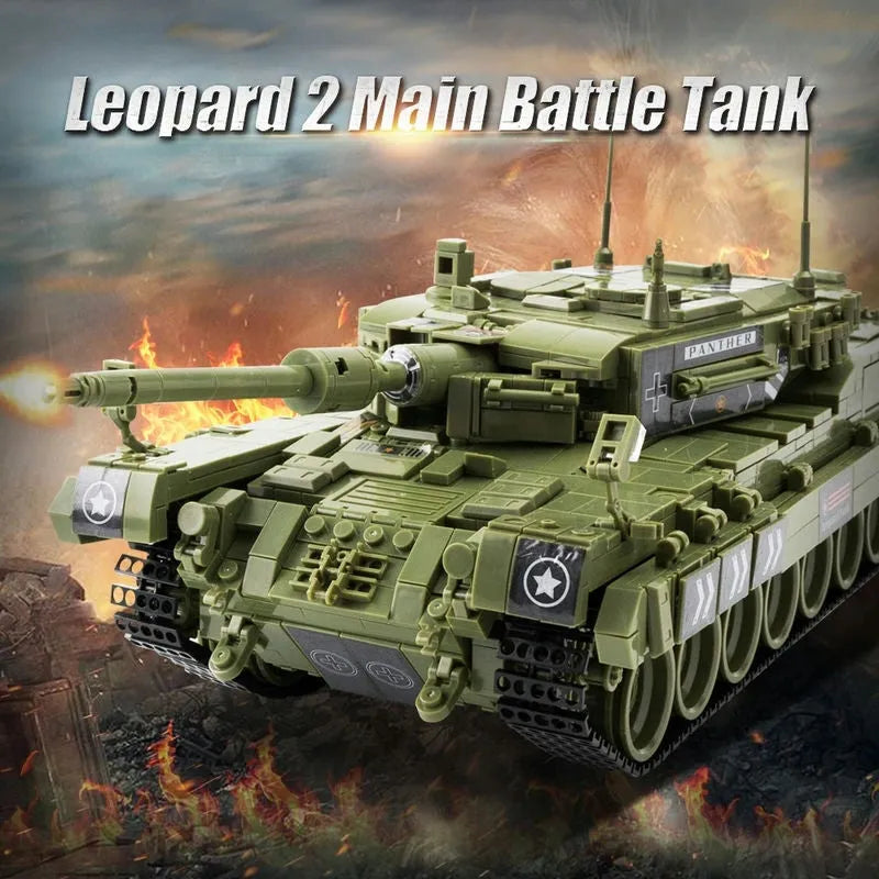 MOC Military WW2 Leopard 2 Main Battle Tank Bricks Toys