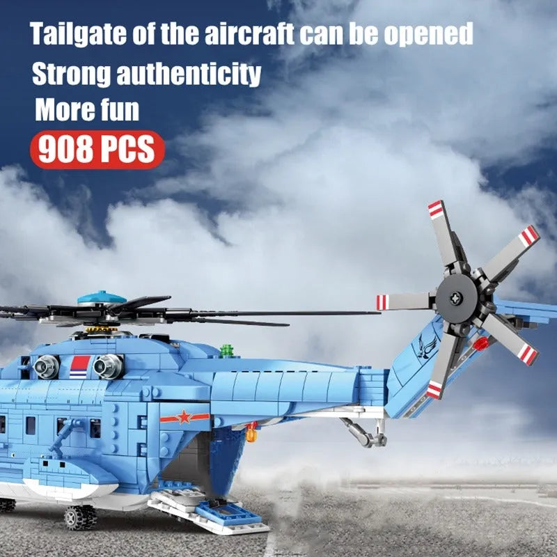 MOC Military Z-18 Utility Helicopter Bricks Toys