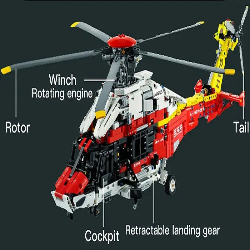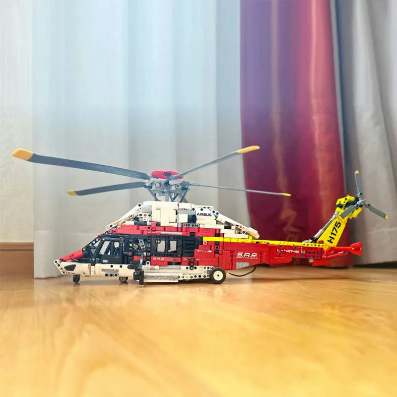 MOC Motorized Airbus H175 Rescue Helicopter Bricks Toy 74666