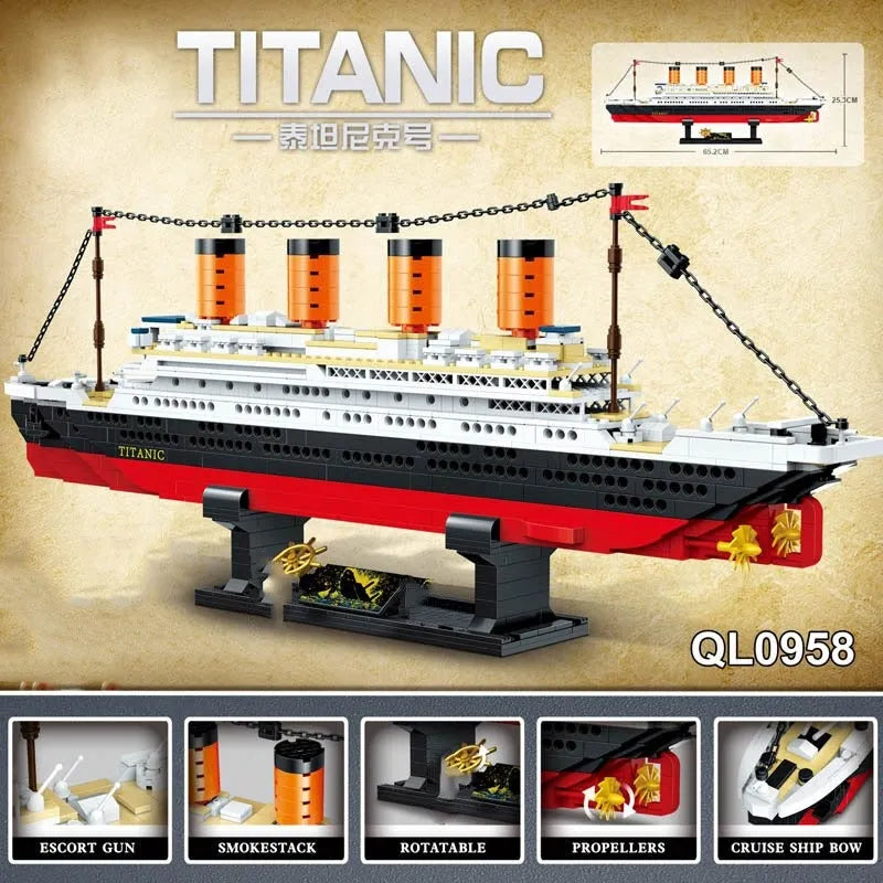 MOC RMS Titanic Steam Boat Ship Bricks Toys