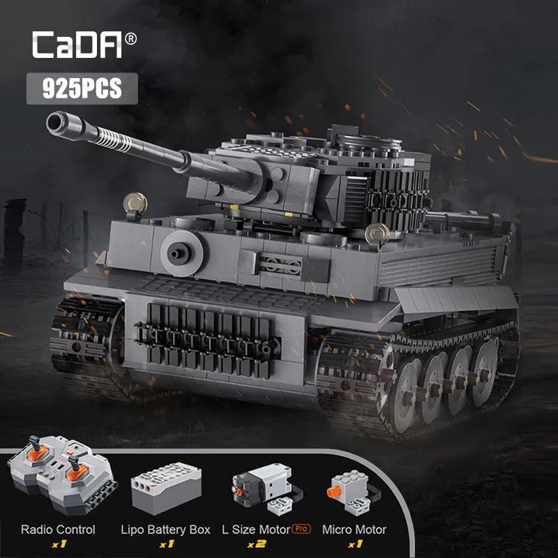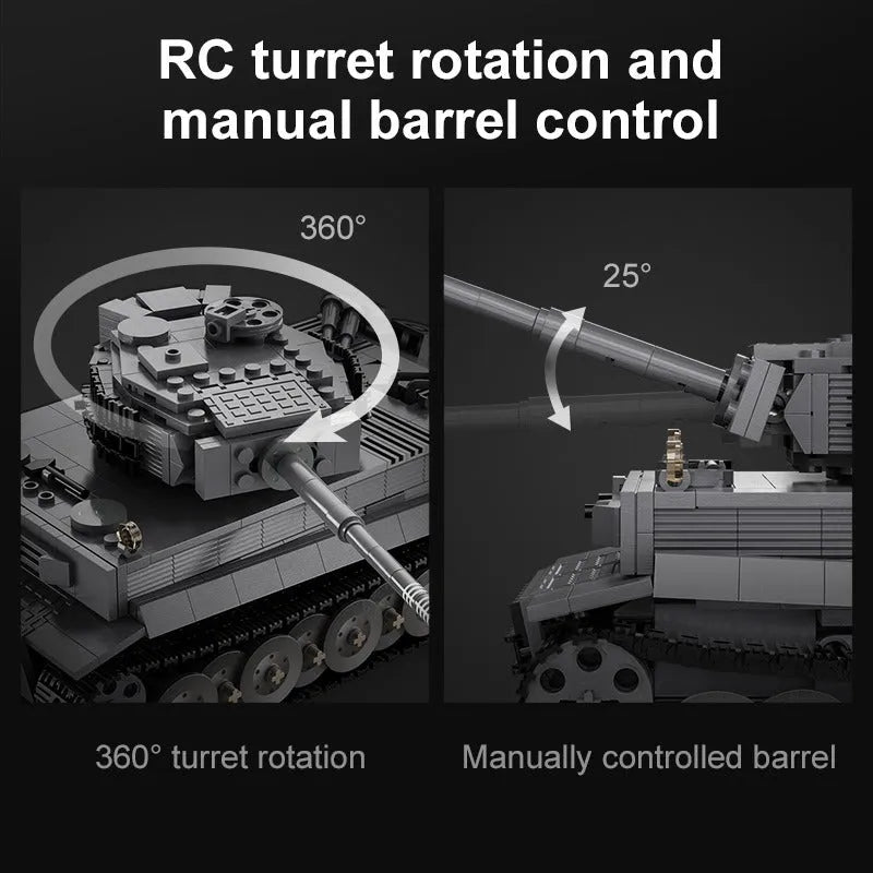 MOC WW2 Motorized RC Tiger Battle Tank Bricks Toy