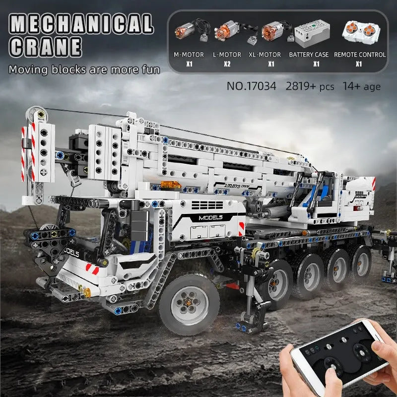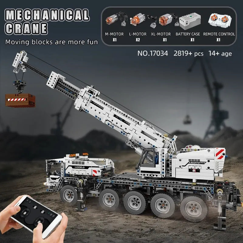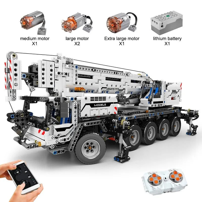 Tech MOC RC Mobile Lifting Crane Truck Bricks Toys 17034